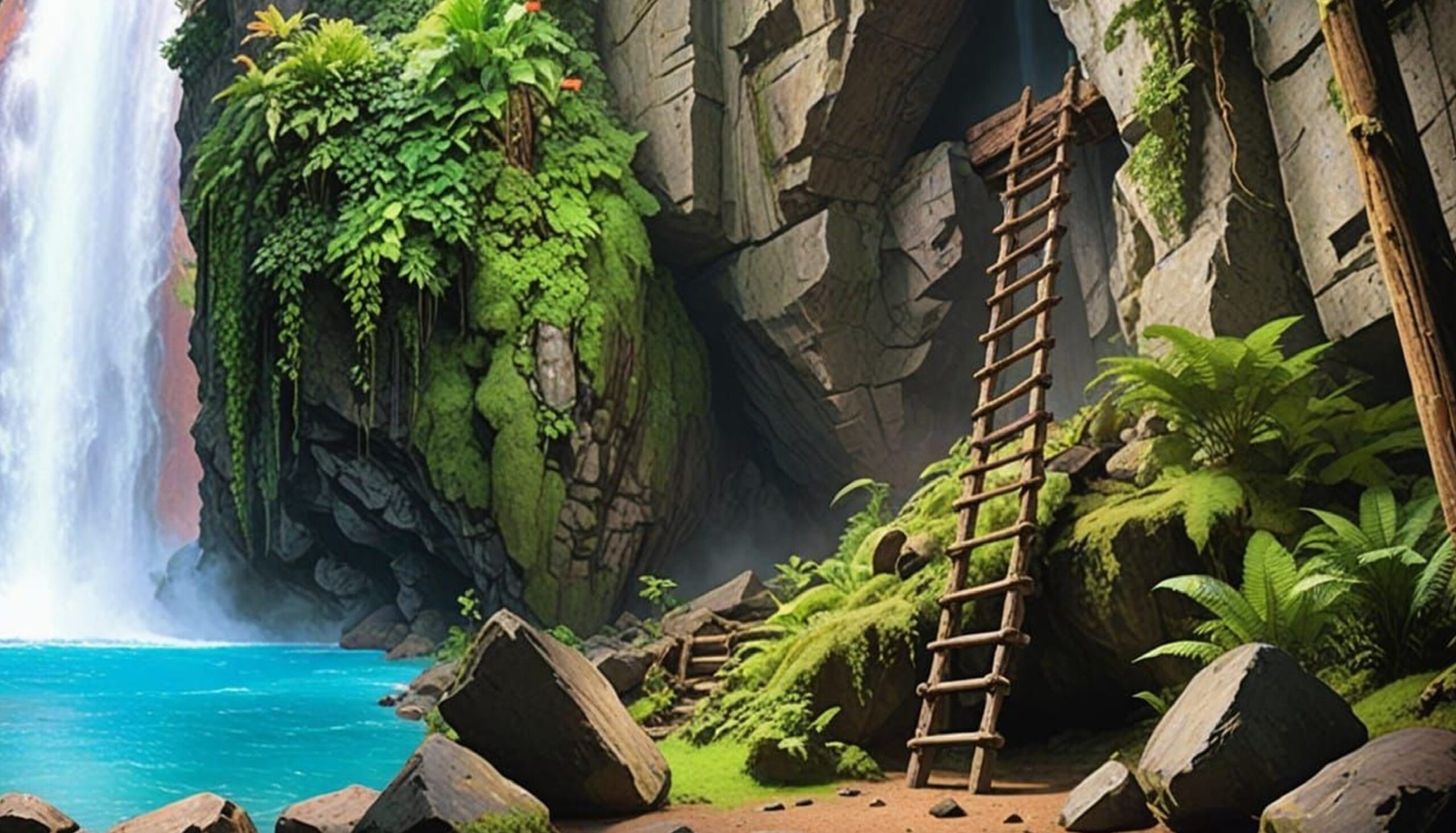 Da war es wieder. Kläglich schrie dort unten ein Tier, offenbar aufgrund bitterer Schmerzen. John stand auf und hielt Ausschau. Sehen konnte er aber nichts. Als das Geräusch zum dritten Mal an sein Ohr drang, ließ ihn die Neugier nicht mehr los. In Windeseile stieg er seine Leiter hinab, griff noch schnell nach seinem Speer und seiner Axt und schlich vorsichtig durch den Wald.