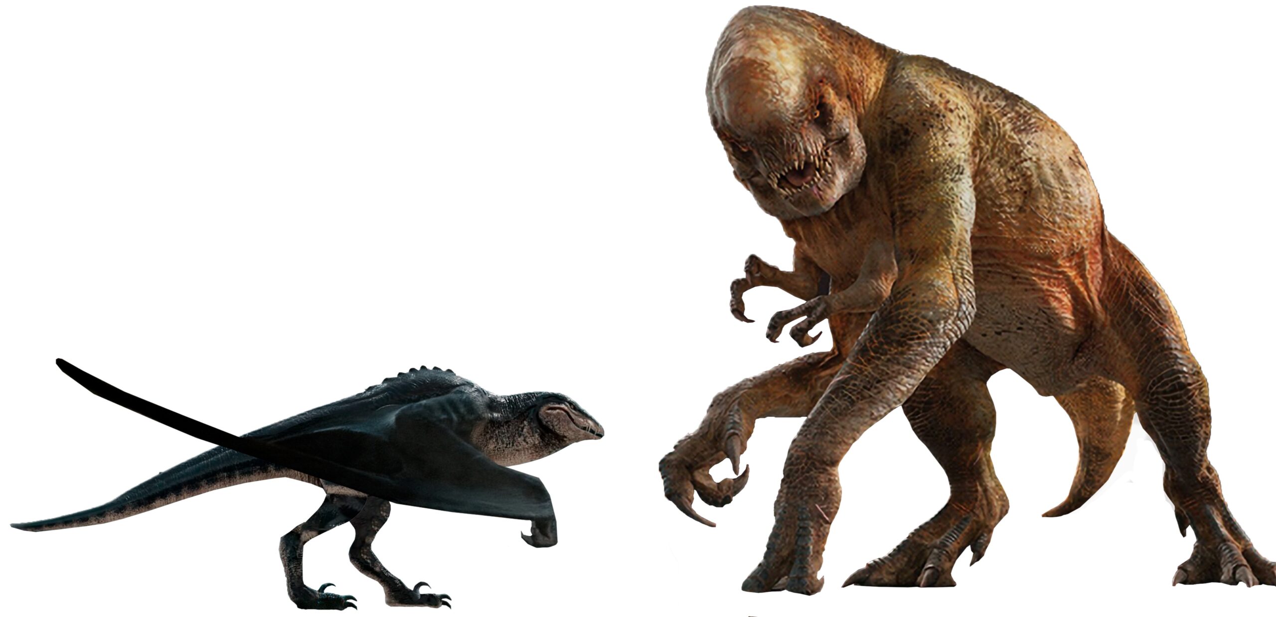 VelociraptorRaptoren kommen natürlich auch wieder vor. Sie bereiten dem unsympathischen Xavier beinahe ein rasches Ende, als dieser sich zum Pinkeln davonmacht. Allerdings werden die Raptoren dabei selber zur Beute – für die fliegenden Mutadons. Es bleibt hier also bei einem reinen Cameo-Auftritt. Das Design ist das gleiche wie in den Vorgänger-Filmen: noch immer kahl und reptilienartig, ohne Federn. |