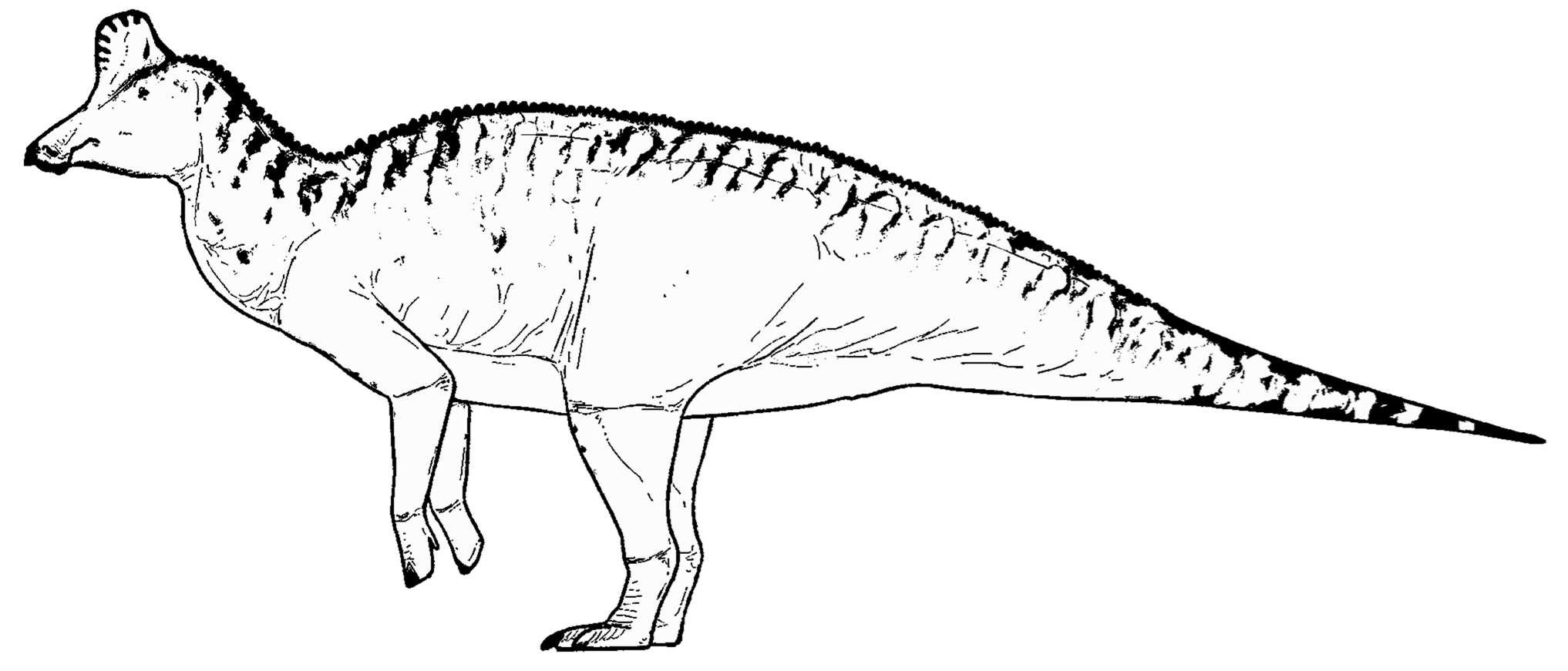 Sharpe et al. beschreiben eine Neubearbeitung eines mumifizierten Hadrosauriers, der eine große, aus Weichgewebe bestehende Kopfhaube besaß, trotz fehlender knöcherner Kammstrukturen. Die Haube bedeckte weite Teile des Schädeldachs und zeigte vorne einen gekerbten Rand. Erstmals werden Verletzungen der Halshaut erkannt, die bekannten Hautpathologien anderer Hadrosaurier ähneln. Die nun freigelegte linke Körperseite mit verschobenen Wirbeln und gelöster Haut spricht für eine langsame Einbettung und natürliche Mumifizierung. Ein neu identifiziertes, flaches Postorbitalfach passt weder zu Edmontosaurus regalis noch zu E. annectens, wodurch das Tier als eigenständige taxonomische Einheit, der Red Willow-Edmontosaurus, anerkannt wird. Die glatte Knochentextur unter der Haube zeigt zudem, wie begrenzt die Schädeloberfläche Rückschlüsse auf Weichteilstrukturen zulässt.