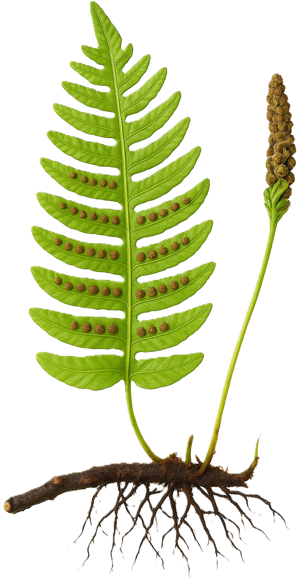 Polypodiaceae indet.19Johnson, K. R. (2002). Megaflora of the Hell Creek and lower Fort Union Formations in the western Dakotas – vegetational response to climate change, the Cretaceous–Tertiary boundary event, and rapid marine transgression. In The Hell Creek Formation and the Cretaceous–Tertiary boundary in the northern Great Plains – An integrated continental record of the end of the Cretaceous. doi:10.1130/0-8137-2361-2.329 | North Dakota, South Dakota | HCIII | 1 Exemplar | Tüpfelfarn (Polypodiaceae) |